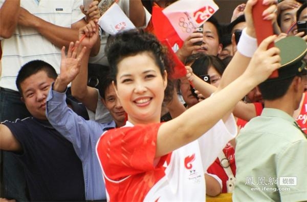 2008年6月3日,湖南,北京奧運聖火在岳陽傳遞,夢鴿燦笑當火炬手。