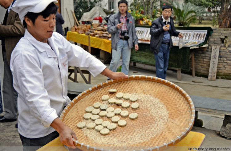 當地的壹種小吃,忘記名字了,說當地婚宴喜事上都要吃的,外面是芝麻,裡面有餡料,很軟。