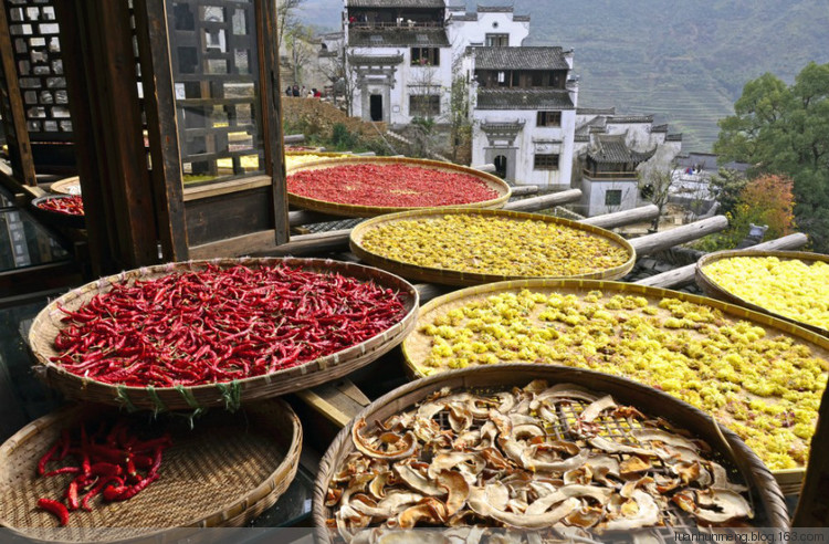 篁嶺景區地處婺源石耳山脈,面積5平方公裡,由索道空中攬勝、村落天街訪古、梯田花海尋芳及鄉風民俗拾趣等游覽區域組合而成。篁嶺屬典型山居村落,民居圍繞水口呈扇形梯狀錯落排布。篁嶺“曬秋”聞名遐邇,村落“天街九巷”似玉帶將精典古建串接,徽式商鋪林立,前店後坊,壹幅流動的縮寫版“清明上河圖”。 篁嶺保存良好的徽式古村落格局,有原汁原味古村落風貌及民情民風。