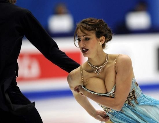 在花滑賽場上,露底走光是常有的事兒,但誰也沒有匈牙利花滑乳神諾拉-霍夫曼更能吸引眼球。她在冰場上被男伴推擠豪乳的照片已經成為冰迷心中的經典。