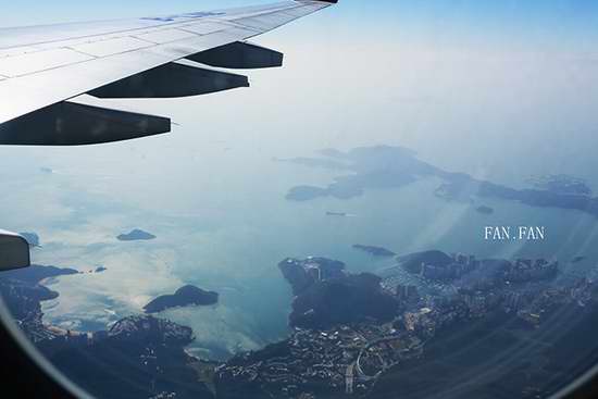 起飛前拍壹張美麗的香港,藍天白雲大海,美不勝收