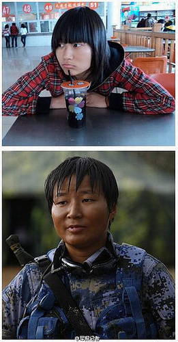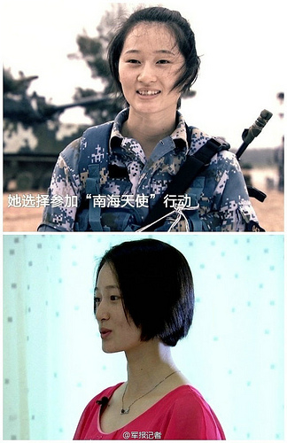 原文配圖:中國海軍陸戰隊女兵參軍前是個美女。