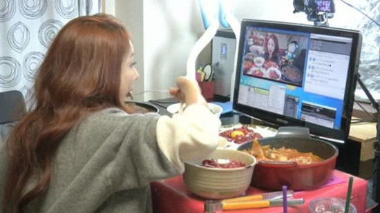 韓國34歲女子樸舒妍(Park Seo-yeon)原在壹家咨詢公司工作,但自從發現在攝像頭前直播吃飯能夠讓自己獲得高額報酬後,她便離職了。現在,她化名“The Diva”,成為壹名專職的“吃飯直播員”。每天,她在攝像頭前,面對網友吃叁個小時。而觀看直播的網友則不時向她發送“虛擬氣球”。當她把得到的氣球轉化為現金後,便可以輕松賺到薪酬。
