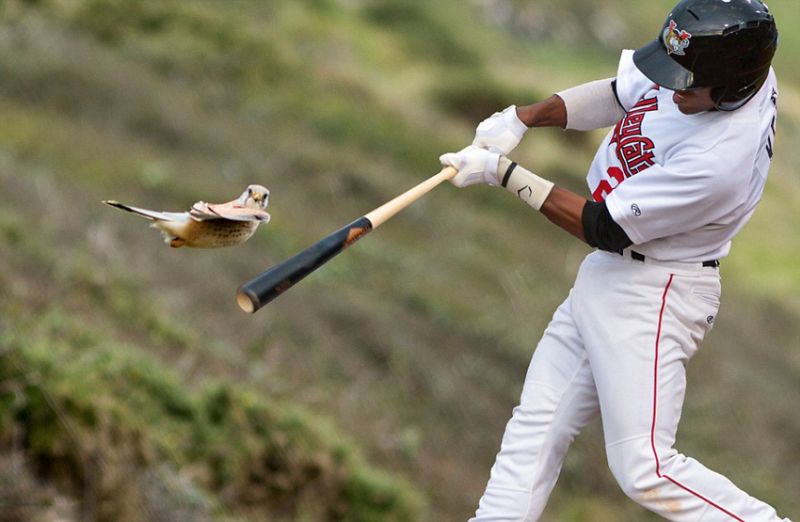 英國《每日郵報》1月28日刊登了壹組網絡上爆紅的照片,照片中的主角是壹只在飛行中轉過頭的紅隼。它壹會兒化身為棒球,壹會兒是憤怒的小鳥,畫面拾分滑稽有趣。這壹系列PS照片的原圖拍攝者是壹名攝影專業的學生賴安•蘭(Ryan Lang),他的本意只是要拍攝壹只飛行中的紅隼。沒想到照片傳上網後,被網友們惡搞,制作出這壹系列讓人忍俊不禁的照片。