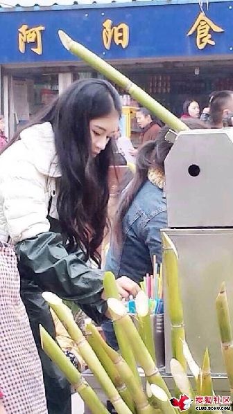 自貢網友“豬豬俠6”近日在當地論壇發帖稱:“你知道自貢燈杆壩馬年春節出現了壹位身高175CM,面容姣好,秀發飄逸的賣甘蔗女神嗎?清純的 ‘甘蔗西施’這幾天都在燈杆壩榨汁給觀燈的市民。生意好到有網友甚至專程驅車來到燈杆壩不為看燈會,就為喝上‘甘蔗西施’的壹杯汁。”