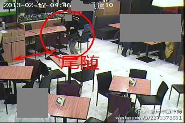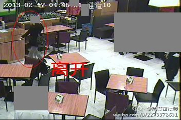 繼不久前公布湖北大廈電梯監控錄像後,2月11日周翠麗再在微博曬出幾張監控錄像截圖,截圖日期正是李某某案發生當晚(2013年2月17日),疑似李某等帶楊女士離開酒吧後前往的餐廳,圖片上女子身穿黑色上衣,左手挎包,疑似暗示受害人楊女士離開時“清醒”。但網友壹直對其爆料證據真假存疑。