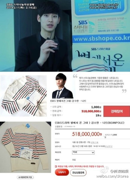金秀賢劇中線衫義賣拍出5億韓幣天價