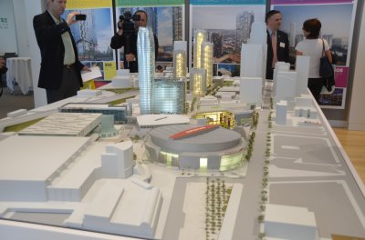 洛杉磯市中心商業區可望在包括中資企業「綠地集團」及「泛海集團」資金的挹注下蓬勃發展,若壹切順利,這個模型將是未來的洛市中心商業區。(記者王善言/攝影)