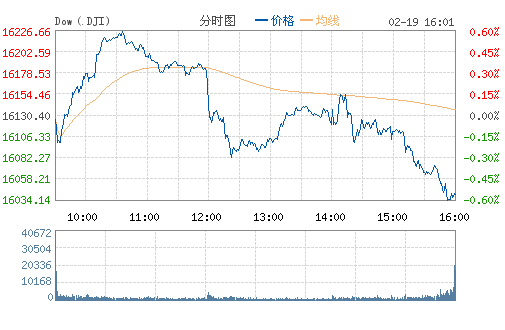 道瓊斯工業平均指數下跌89.84點,跌幅0.56%,至16040.56點;納斯達綜合指數下跌34.83點,跌幅為0.82%,至4237.95點;標准普爾500指數下跌12.01點,跌幅為0.65%,至1828.75點。盤面上,金融和原材料板塊領跌,能源板塊上漲。