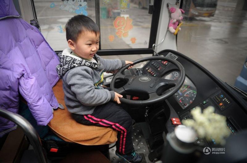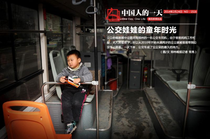 塵塵的爸爸郭中立是河南鄭州的壹名公交車司機,由於爸爸媽媽工作忙碌,無暇照看孩子,所以從2010年開始未滿兩歲的塵塵就被爸爸帶到公交車上照看。壹天下來,公交車成了塵塵呆的最久的地方。2014年2月17日,在公交車上塵塵總是非常安靜。(圖/文 鄭州晚報記者 常亮)