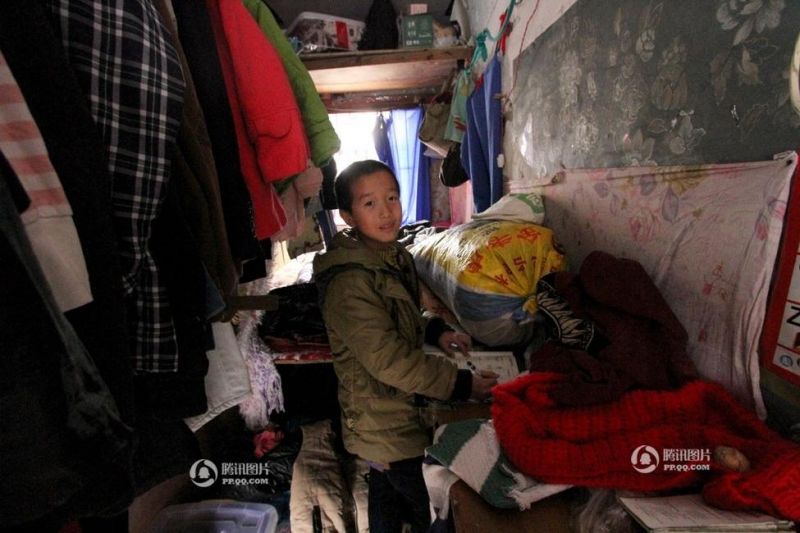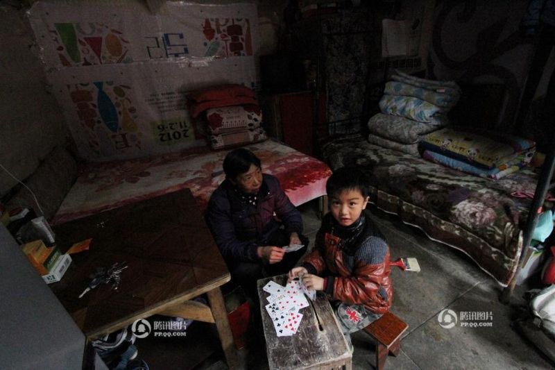 壹個孩子在和奶奶打撲克消磨時間,這間窄小的房間是目前全家人的臥室。