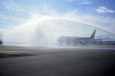 全日空首航抵温哥华 获洒水礼迎机