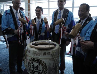 左起:雷启民、平子裕志、斯顿、冈田诚司参加剪彩仪式。