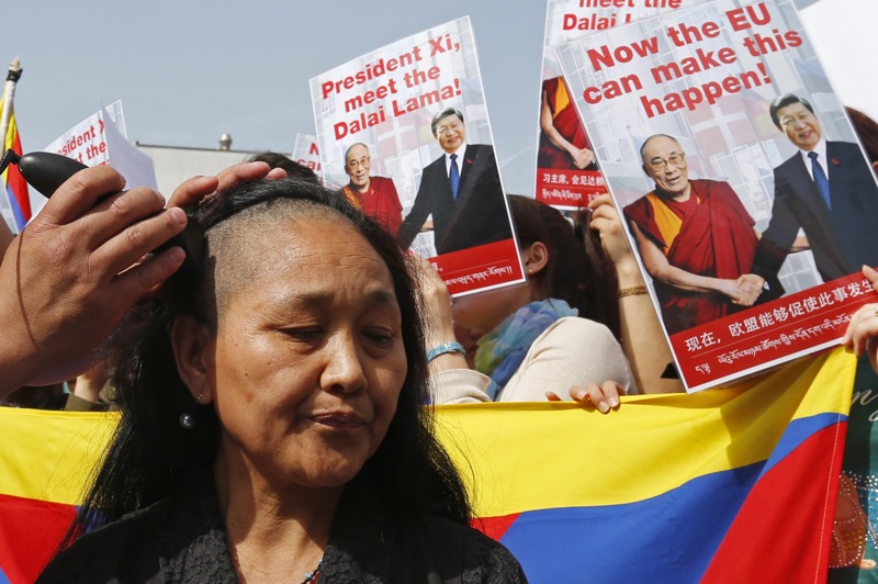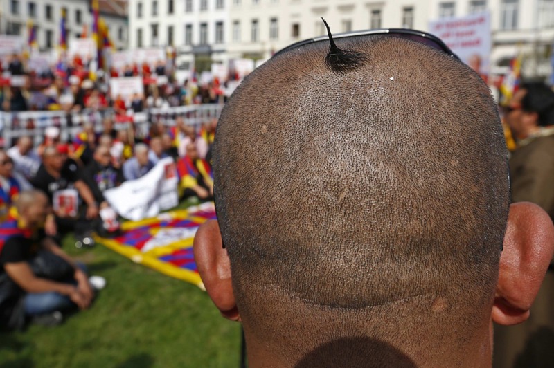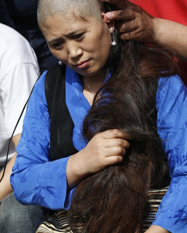 據警方的消息說,前來歐盟總部抗議的人士大概有250人。他們手中舉著橫幅,口中喊著停止鎮壓的口號。警方說,壹些婦女混雜在抗議的人群中,大約有50人剃禿了頭,其中有幾名婦女也剃成了光頭。