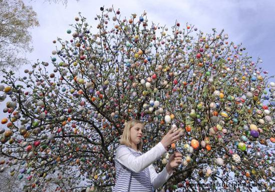在德國,壹對夫婦在他們的花園內用9800顆彩蛋裝飾他們的復活節樹