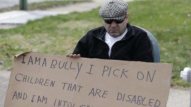 美國男子埃德蒙·阿維夫欺負殘疾鄰居長達15年,被判掛牌示眾。(網頁截圖)