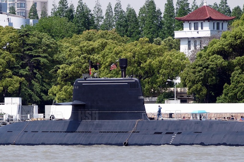 停靠在軍用碼頭的改進型039B潛艇,有分析稱該艇的攻擊對象是日本蒼龍級潛艇以及越南進口的俄制基洛級潛艇。