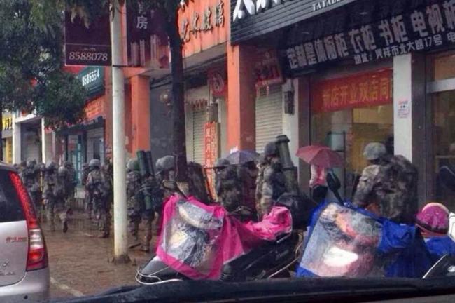 中越南海對峙升級導致越南國內發生嚴重的反華排華事件令外界擔心中越會否再現35年前那場邊境戰爭,而此前參與過中越戰爭的現任防長常萬全於5月13日現身雲南以及港媒聲稱解放軍在中越邊境出現異動加劇緊張情緒。盡管解放軍立即出面否認中越邊境軍隊進入叁級戰備狀態,但靠近越南的中國城市憑祥市還是出現解放軍緊急調動的信息。從網絡披露的照片得知,解放軍士兵不僅全副武裝,而且火炮、戰車等裝備也加入到調動中。圖為解放軍士兵身背反坦克發射筒穿過市區,從右上角地址可得知事發地在廣西憑祥市,該市緊鄰越南。