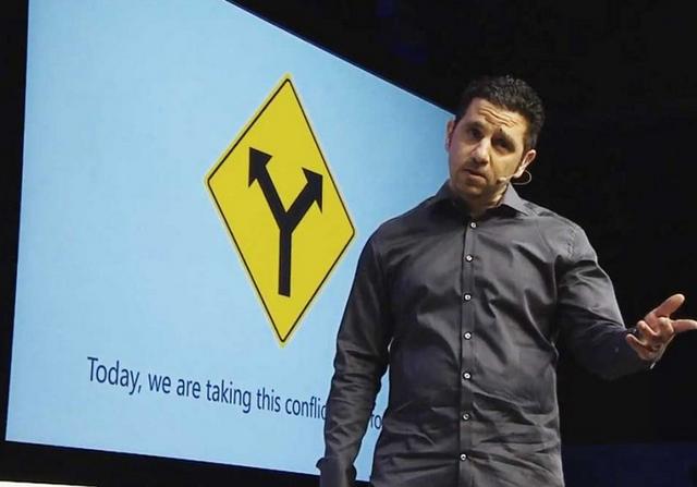 他用了這樣壹個混亂的路標來表示微軟的產品方向。