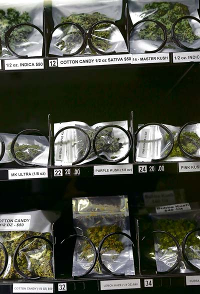 圖為售賣機裡供選購的大麻產品。