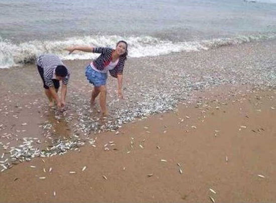 2014年6月14日下午,廈門環島路台灣民俗村對面的海灘上,出現上萬條小魚被沖上沙灘的奇景,長達兩百米,引發眾多游客和附近居民爭相撿魚。
