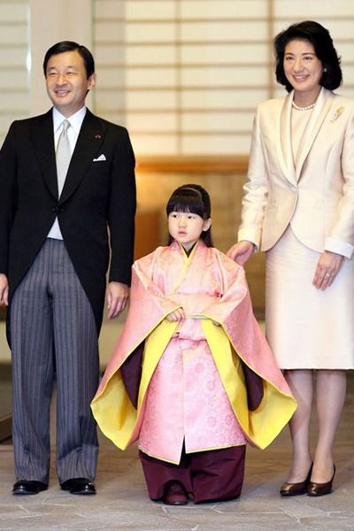 日本皇太子德仁和太子妃雅子的女兒--愛子公主。由於日本皇室缺乏男丁,愛子公主也曾被納入繼位人選考慮范圍內,這樣就需要修改相關法案。不過在悠仁王子出生後,修改法案的計劃就隨之擱置了。這也是日本皇室近41年來首添男丁。圖為愛子在父母的陪同下參加傳統儀式。