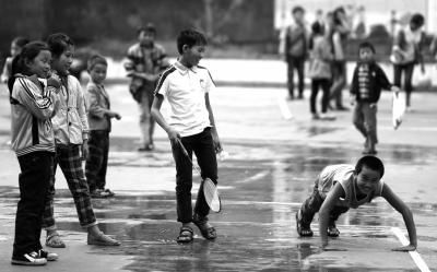 ▲楊六斤在校很活潑,下課後參加體育活動。