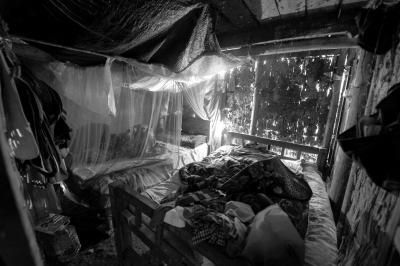 楊六斤住在他的堂哥家裡▲,堂哥在壹個狹小的房間裡給他安置了壹張床。
