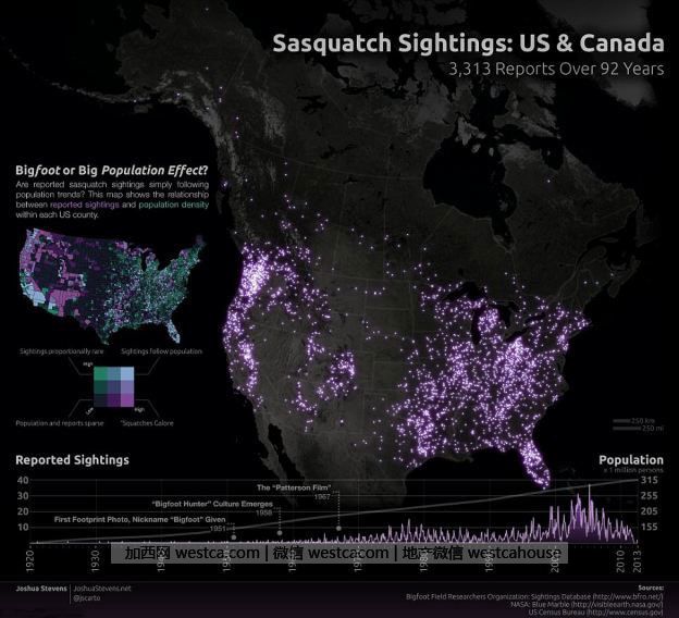 奧尼爾並不是發現“大腳怪”的第壹人。1951年,美國探險家希普頓自稱發現了“雪人”的腳印。美國壹名在讀博士發布的地圖顯示,1921-2013年間有3313人次稱發現了“大腳怪”,地點集中在美國西海岸。- 新聞來源於其它媒體,內容不代表本站立場!