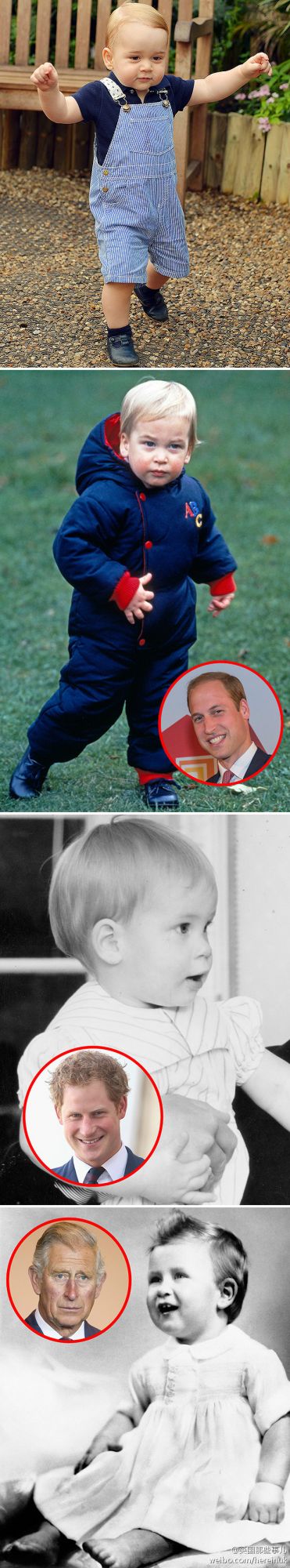 喬治,威廉,哈裡,查爾斯... 肆個英國王子壹歲的樣子