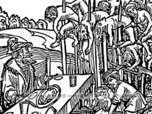 23、刺刑。看这名字就知道这个刑罚跟刺穿王弗拉德三世有关。15世纪时,罗马尼亚的犯人会被放在粗大的尖杆上,然后随着杆子被立起来,犯人会在自己体重的作用下被杆子刺穿并且顺杆下滑。用这种办法,犯人死前会被吊足三天命。据说弗拉德曾经为了餐时助兴,一次性用这种办法处死了20000人。