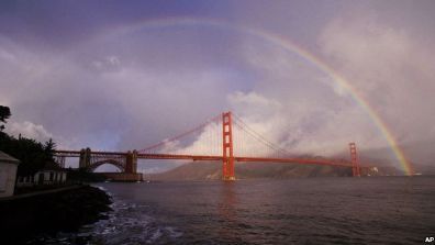美國舊金山金門橋和彩虹。投資移民是外國人獲得美國移民簽證的橋梁之壹