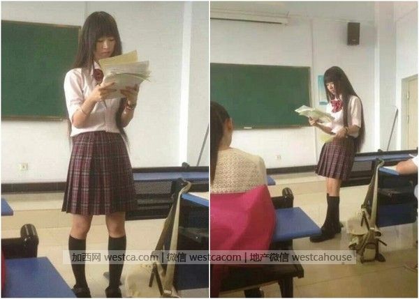 ▲河南英師cosplay穿學生裙上課。