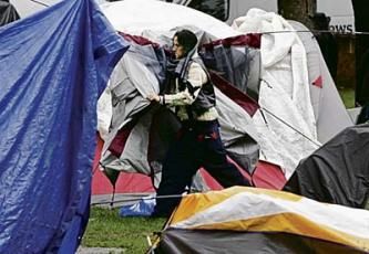 奧本海默公園壹些無家可歸者周叁的日間陸續拆帳篷,湑r趕奩誶俺紛摺O惱蛉ㄉ