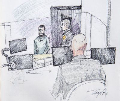 圖為畫家筆下的蒙克頓法庭昨天宣判波爾克刑期情形。(加通社)