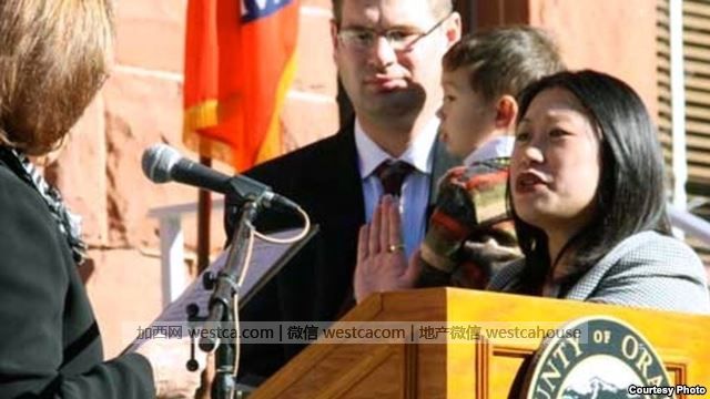珍妮特·阮宣誓就職縣政委員的歷史鏡頭(奧蘭治縣政府檔案照)