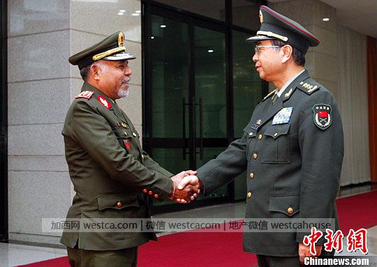 由中國軍事科學學會舉辦的第伍屆香山論壇11月20日到22日將在北京舉行,這是中國舉辦的最多國別代表參加的安全與防務對話會。圖為11月19日下午,中國人民解放軍總參謀長房峰輝,在北京八壹大樓與東帝汶國防軍司令蒂穆爾會談。