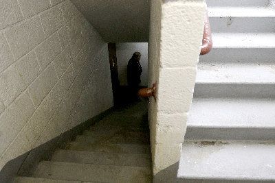 紐約市壹名華裔新手警察20日晚在布碌崙政府樓黑暗的樓梯間,誤殺沒有持槍的28歲男子。圖為調查人員在檢視命案現場。(美聯社)