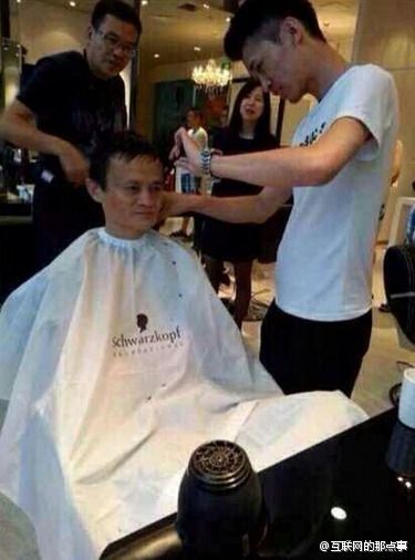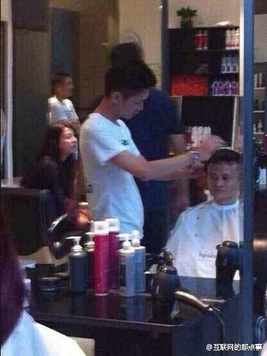 微博大號@互聯網的那點事今天曝光了兩張照片,顯示馬雲正在理發店內理發,並神吐槽壹句:“淘寶、天貓再牛逼又咋樣,不是還得到線下理發啊!”