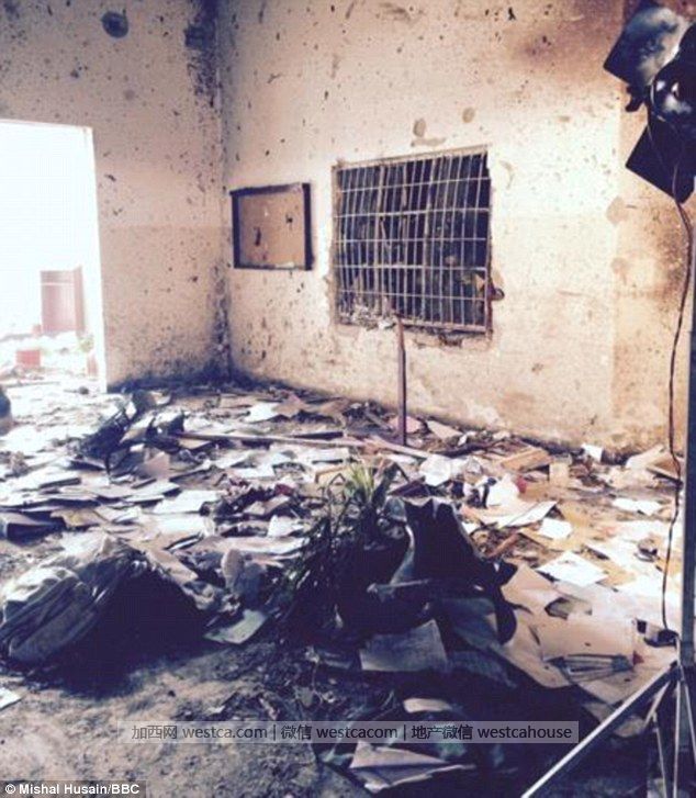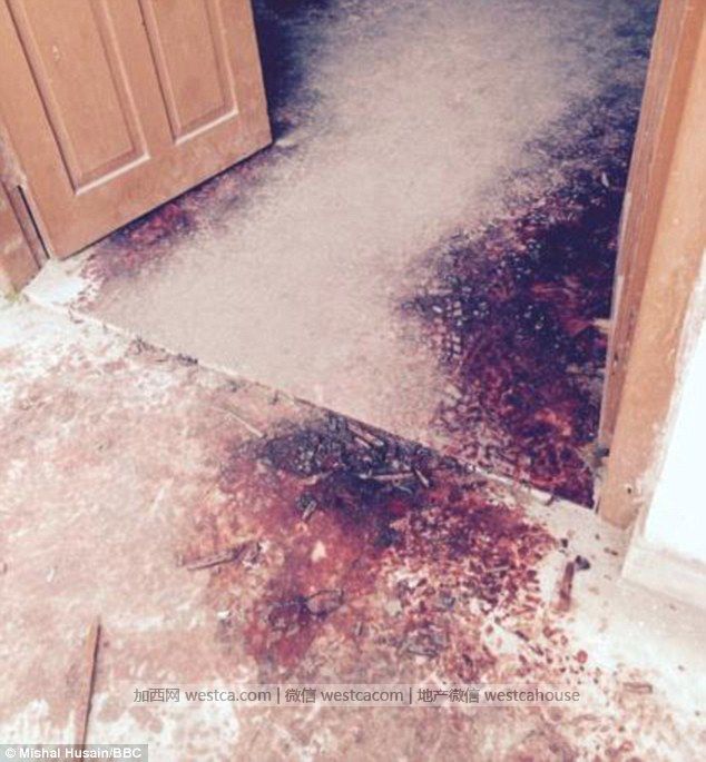 通往白沙瓦學校禮堂的路上濺滿了鮮血,壹名受害者的眼鏡碎片散落在地上。