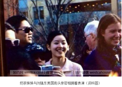2014年2月24日,貼吧曝光了劉強東、奶茶妹妹與壹幹好友的合影,照片中的兩人並未毗鄰而坐,奶茶妹妹笑得異常燦爛。隨後3月10日清華大學的內部論壇爆出消息,贰人戀愛。