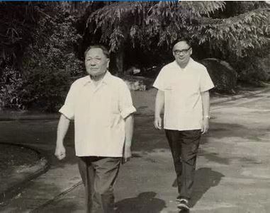 這是丁關根當年陪同鄧小平散步的鏡頭。