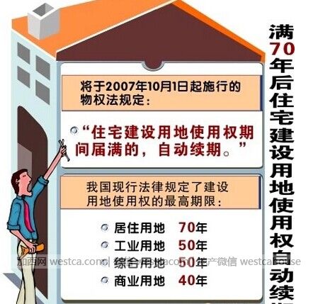 新的物權法已經生效。該法明確了公私財產的平等受保護權。我國規定住宅用地的最高年限70年。商業用地40年(有特殊50年限)。綜合用地50年。現已明確。屆滿自動續期。續費按當時的1%-10%來增收(即土地使用權出讓金)。