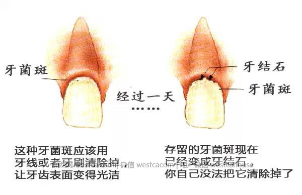 牙菌斑就是細菌在牙齒上的存在形式,像壹塊膜壹樣,緊緊黏在牙齒上,是牙石的前身。