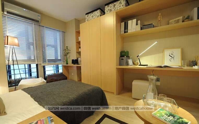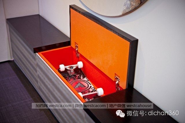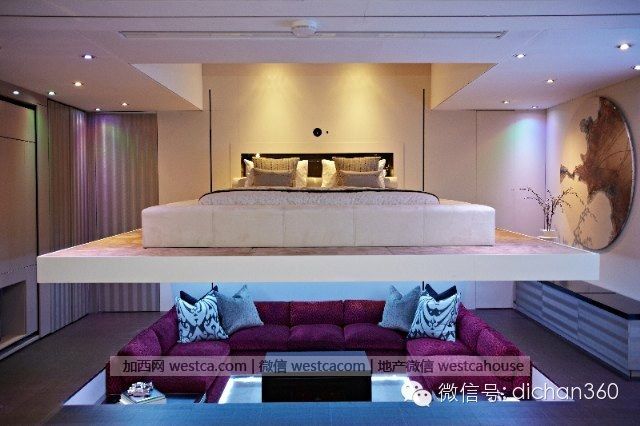 摸按鈕,是壹個可升降的床,同壹個空間,通過設計可變成臥室或是壹個家庭影院.