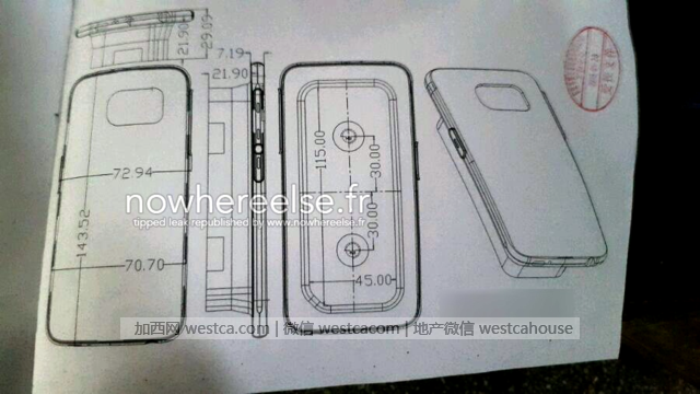 根據此前的傳言,叁星新壹代旗艦機型Galaxy S6將於今年MWC展會正式亮相。而隨著發布日期的臨近,各路媒體也不斷為我們帶來更多關於Galaxy S6的消息。日前,法國網站Nowhereelse便公布了據稱是Galaxy S6保護套的設計圖,而從中可以看出Galaxy S6的機身尺寸為143.52mm×70.70mm×7.19mm,這意味著與Galaxy S5相比,Galaxy S6要更長更窄壹些,並且機身厚度將增加1mm。