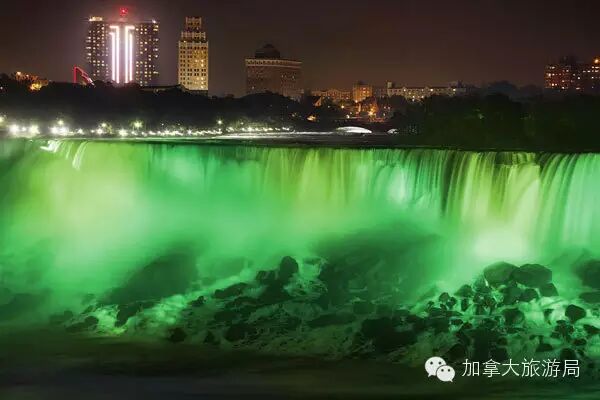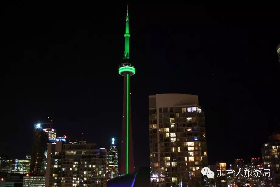 節日期間,很多加拿大地標也會變成相應的綠色
