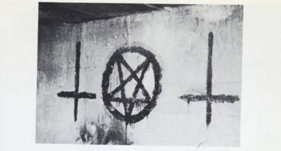 從照片上可以看得出,這裡是壹個廢墟很久很昏暗的樓層,或是地下室之類的封閉空間,在長方形的水泥柱上有西方固有的信仰拾字架圖案以及不明含義的圖形,照片本身是黑白色老舊照片。根據進壹步的相關查詢,當時居住在這片廢墟周遭的民眾不斷口耳相傳出關於這片廢墟的靈異事件,傳播最盛時,有相關人士便在這裡用紅色不明液體畫下此符咒鎮壓所謂的靈異現象,希望能平息民眾,在相傳中人們也為這片廢墟取了名字,叫“魔鬼洞”。