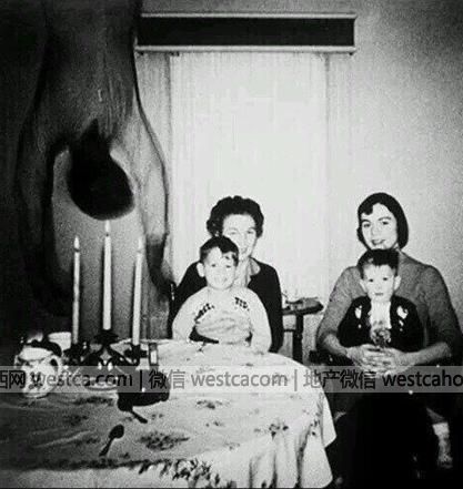 這是壹張老舊的家庭照片,照片上兩位不同年齡段的女性懷裡各抱著兩個可愛的男孩子,看起來壹家人其樂融融。照片背景故事是壹家人喬遷新居,來到新的住所吃晚飯時候拍下的照片,但壹家人在拍照的過程中,誰都沒有注意到,在快門按下的那壹刻,壹個“陌生人”順著天花板垂下,事後看照片的時候也不覺讓他們脊背冰涼。