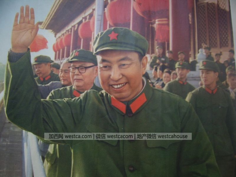 1976年10月24日,首都慶祝粉碎肆人幫慶祝大會上,從右至左:華國鋒、葉劍英、李先念、陳錫聯